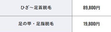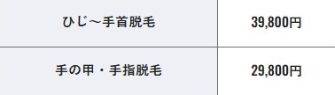 VIO脱毛セットは49,800円、ひじ下脱毛セット・ひざ下脱毛セットは、9,800円です。