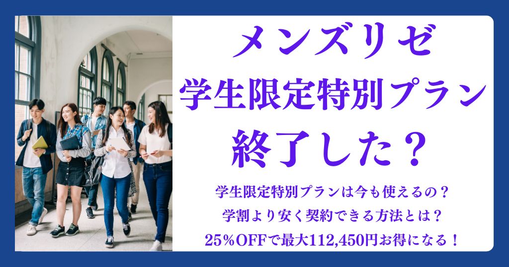 メンズリゼの学生限定特別プランは終了?学割より安く契約する方法を解説!【2026年3月最新】まとめ