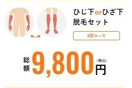 ひざ下脱毛セット(5回コース)が通常料金の約90%OFFとなる驚異の9,800円