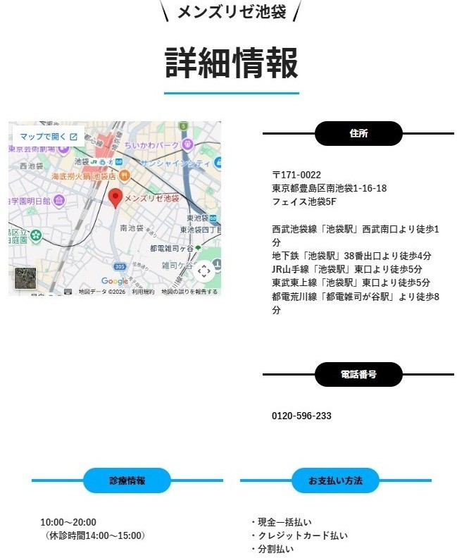 私もメンズリゼを検討した時に、「池袋院は予約が取れるのか?」という点が一番気になり、実際に調べてみました。