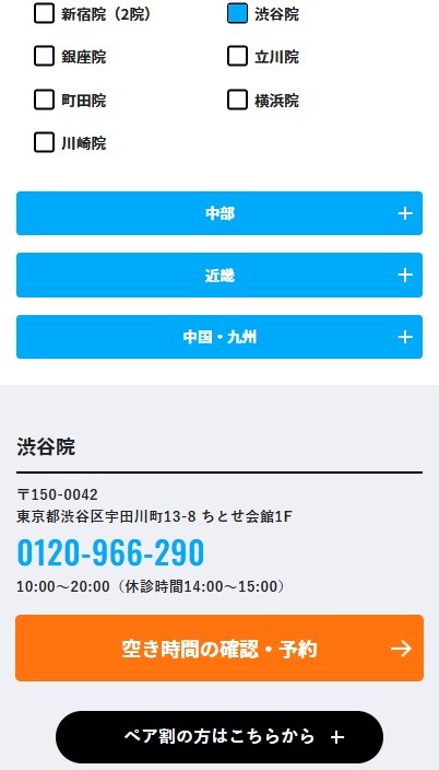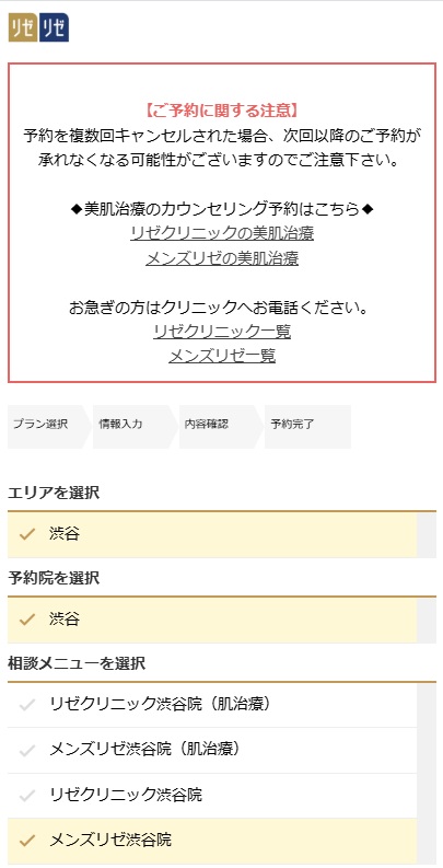 ①相談メニューを選択から予約したい「メンズリゼの院」を選択