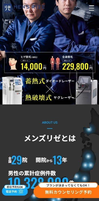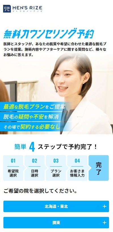 まずは、メンズリゼ公式サイトから、初回無料カウンセリングの予約をします。