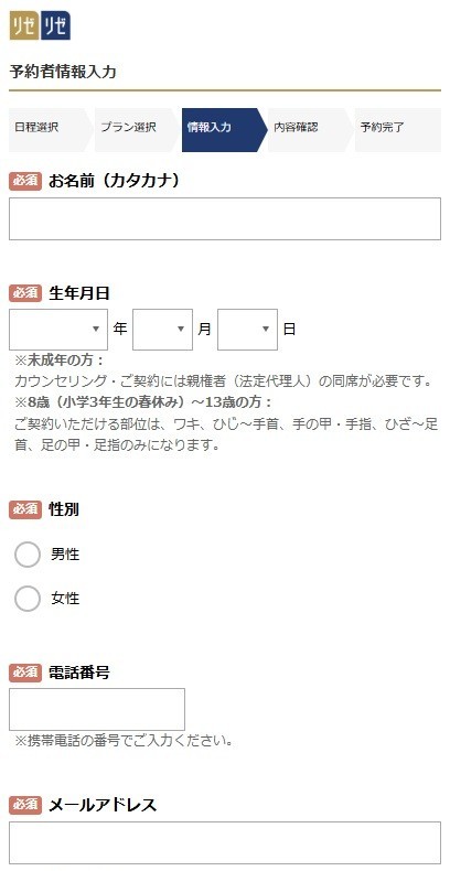 メンズリゼに見積もりを依頼するには、「無料カウンセリング予約」の入力から始めるのが一番スムーズです。