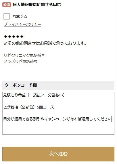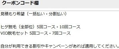 メンズリゼは、無料カウンセリング予約のクーポンコード欄に「見積もり希望」と書けば見積依頼ができます。